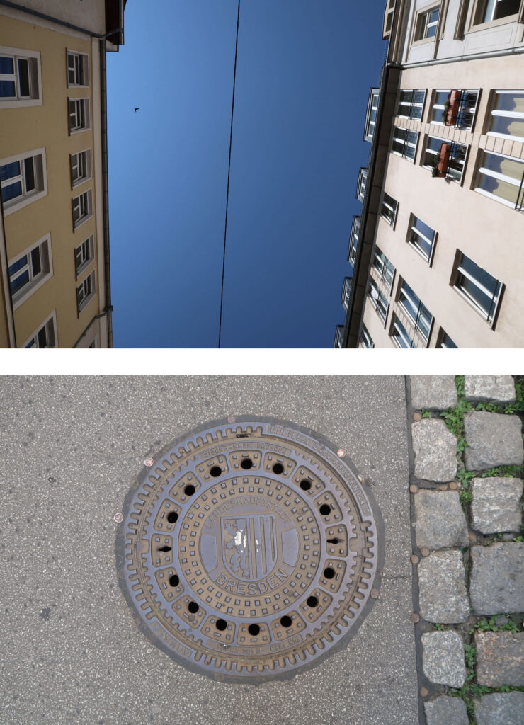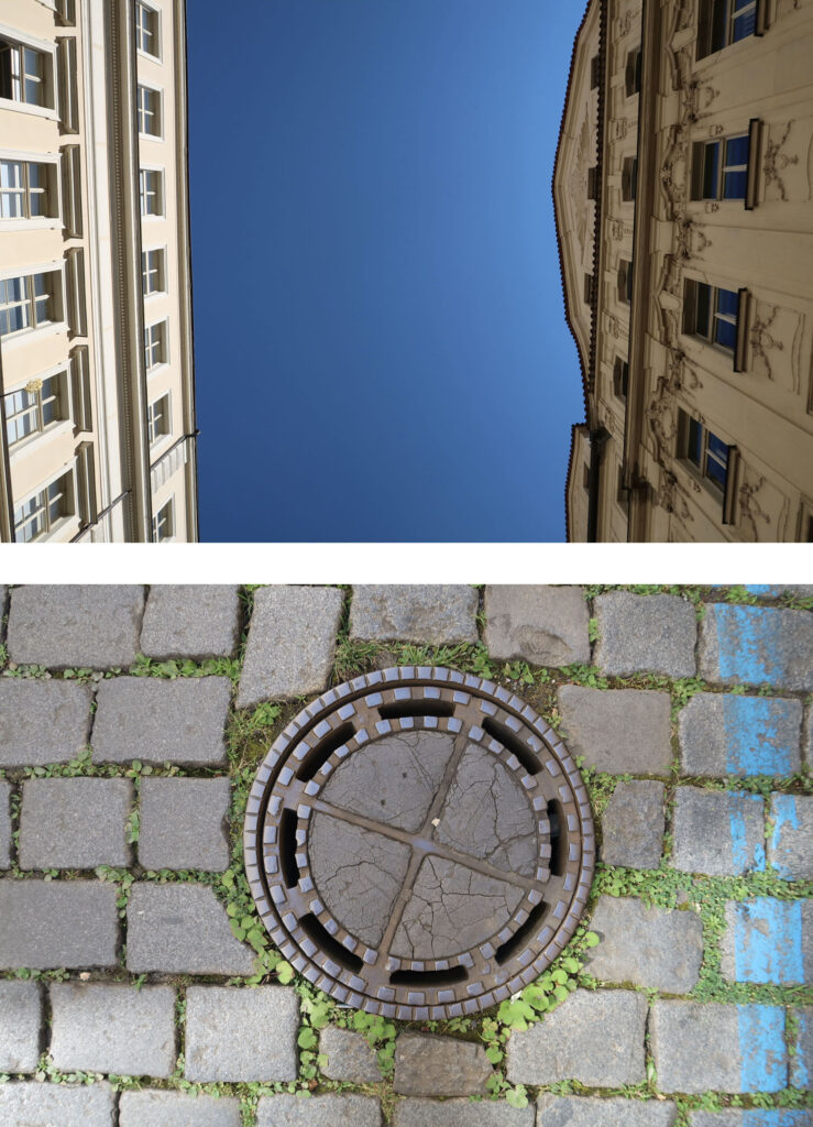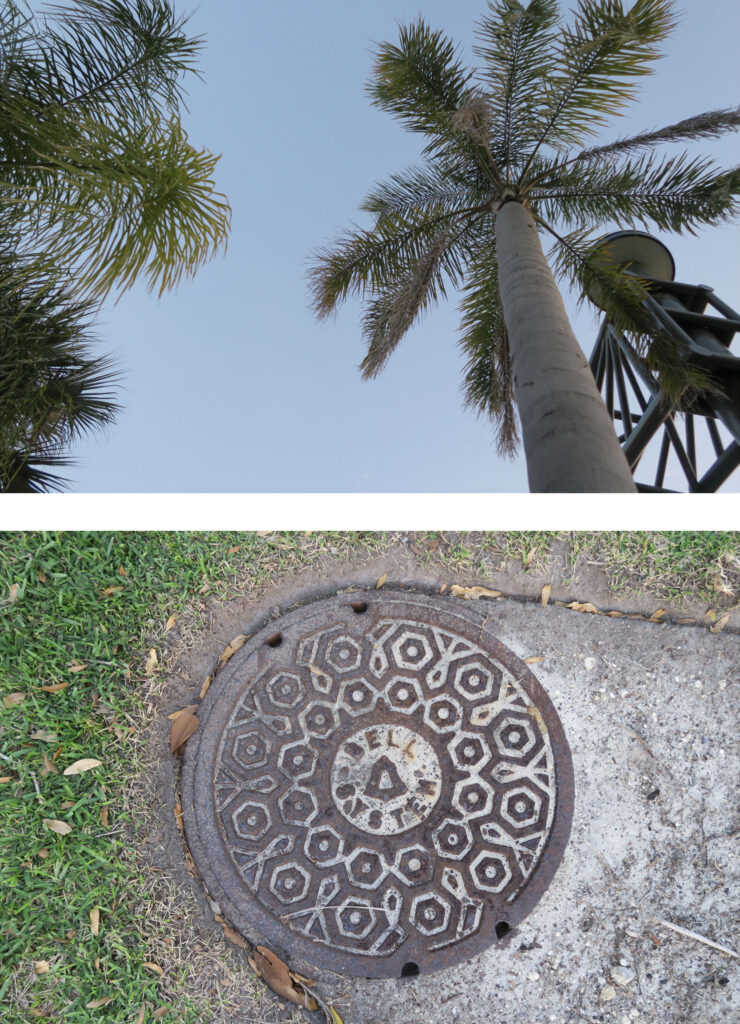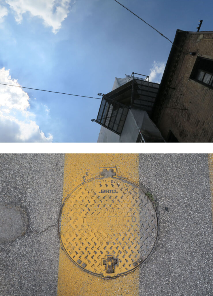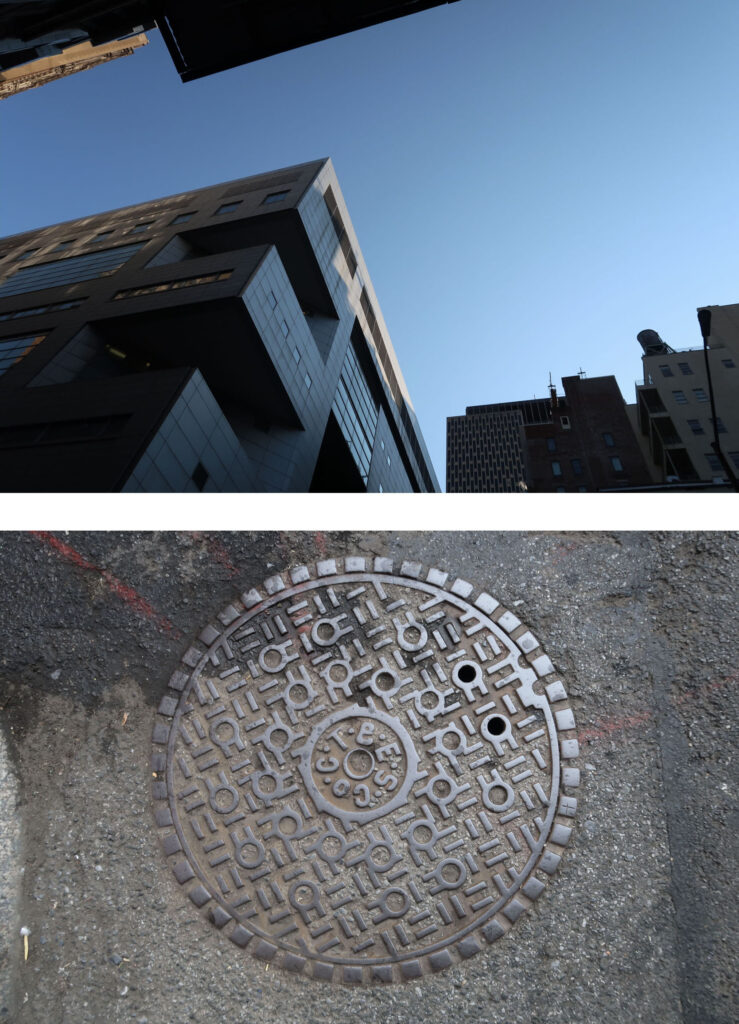above/below  is a photographic project that involves documenting manhole covers and the architecture or natural world (or the combination of) directly above. I am interested in the idea of the commonality of objects, overlooked and mostly ignored. A manhole cover transcends the idea of good/bad area, rich/poor neighborhood etc…they are the same everywhere. These objects are a connection between unconnected locations and communities. While traveling one can often find these objects are the same in countries that have a common colonial history, Senegal and France for example, or between trading partners.  While each above image is an indication of a location, location does not dictate the choice of manhole cover to be photographed. I chose the manhole cover, photograph it, and then simply flip the camera over and accept what is above. Photographs have been taken in Africa, Europe, Asia, North America, Central America and South America.