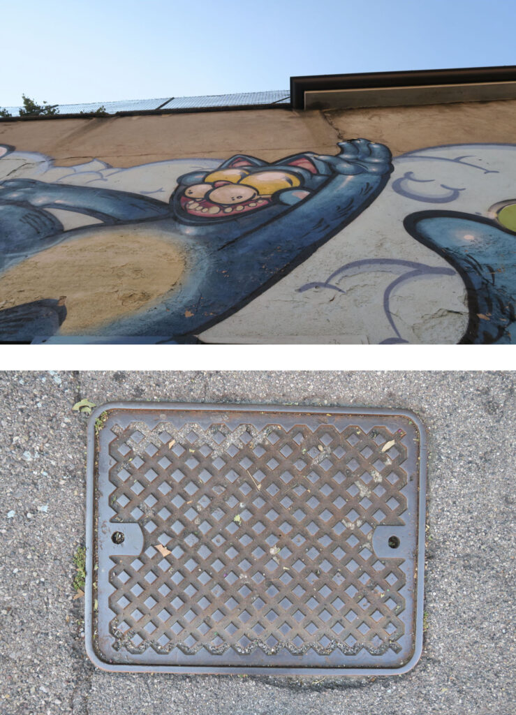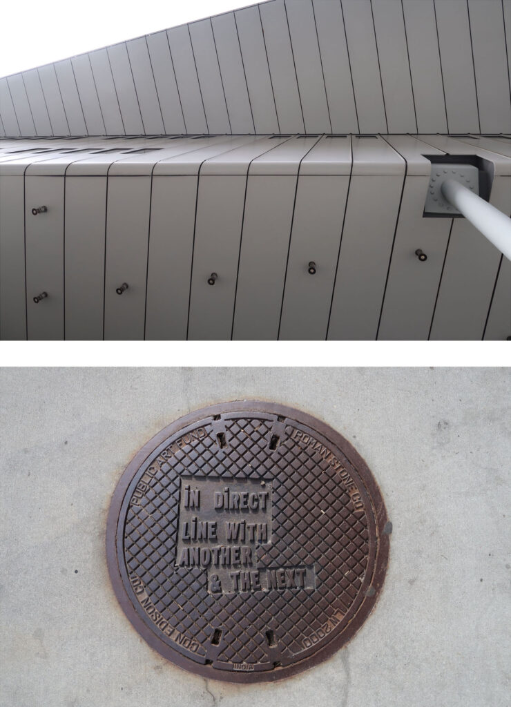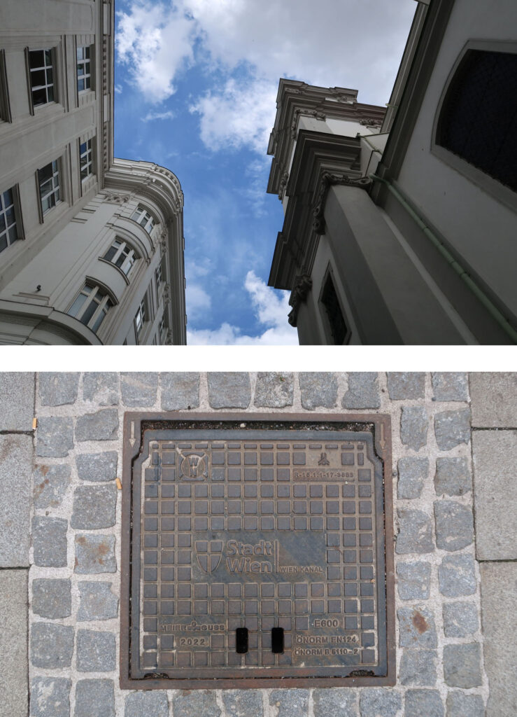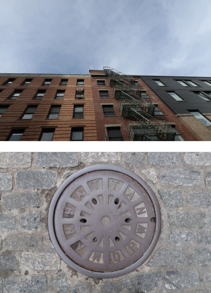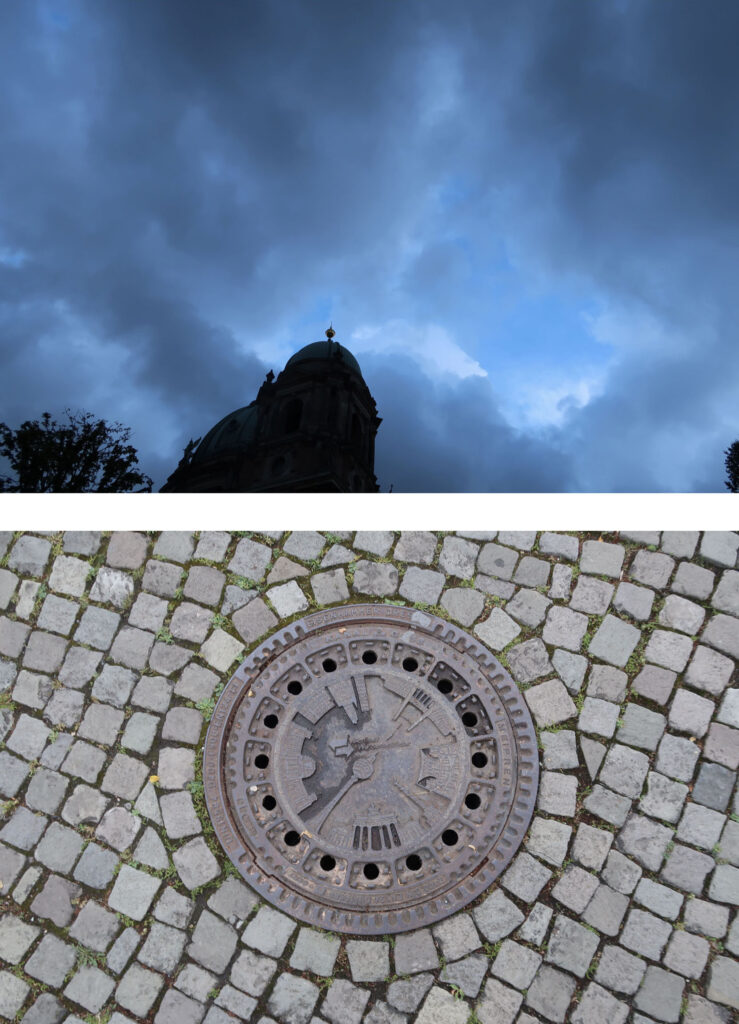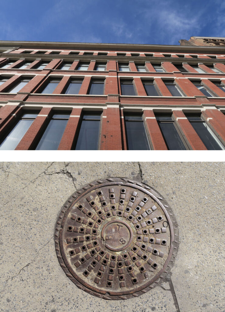 above/below  is a photographic project that involves documenting manhole covers and the architecture or natural world (or the combination of) directly above. I am interested in the idea of the commonality of objects, overlooked and mostly ignored. A manhole cover transcends the idea of good/bad area, rich/poor neighborhood etc…they are the same everywhere. These objects are a connection between unconnected locations and communities. While traveling one can often find these objects are the same in countries that have a common colonial history, Senegal and France for example, or between trading partners.  While each above image is an indication of a location, location does not dictate the choice of manhole cover to be photographed. I chose the manhole cover, photograph it, and then simply flip the camera over and accept what is above. Photographs have been taken in Africa, Europe, Asia, North America, Central America and South America.